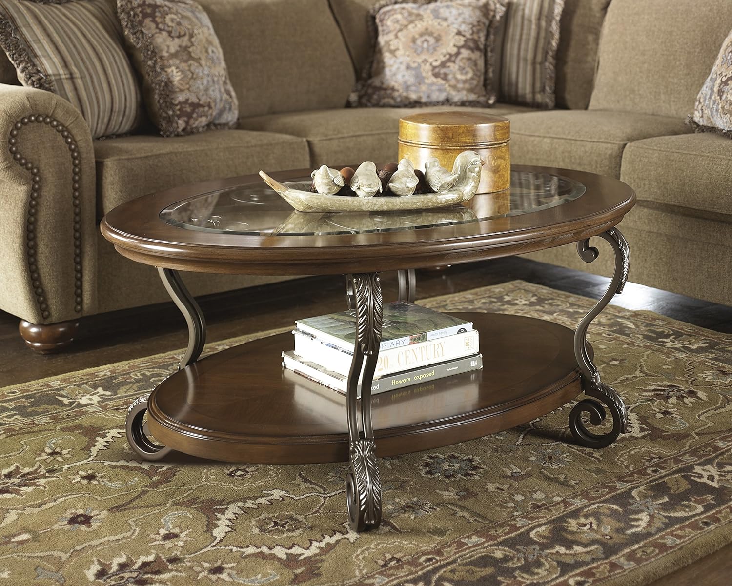 Signature design by ashley nashbryn round coffee table in gray and brown. Crafted with mango wood, this table offers a plank effect surface top with a rich, waxy finish. A stylish coffee or cocktail table can help pull together the whole look of your living room. Ashley furniture kelton coffee table with 2 stools in espresso. Brown and antique cream painted ceramic has a unique weatherworn finish. Whether your style is cool and contemporary, modern industrial or scandinavian inspired, you're sure to find this designer coffee table a welcome addition to your space. It features a top, round design crafted in mango wood with a rich, tobacco brown finish. Made of white oak veneers, wood and engineered wood. Finished with a black metal frame, this table doesn't disappoint. If you have a material of choice, look through a wide range of tables in different materials like marble, glass, wood, and metal. Ashley furniture goes the extra mile to package, protect and deliver your purchase in a timely manner Keep the coffee table from turning into an obstacle in the room by allowing at least 30 inches of open space between it and other pieces of furniture. Kylea 7'10 x 10' rug.